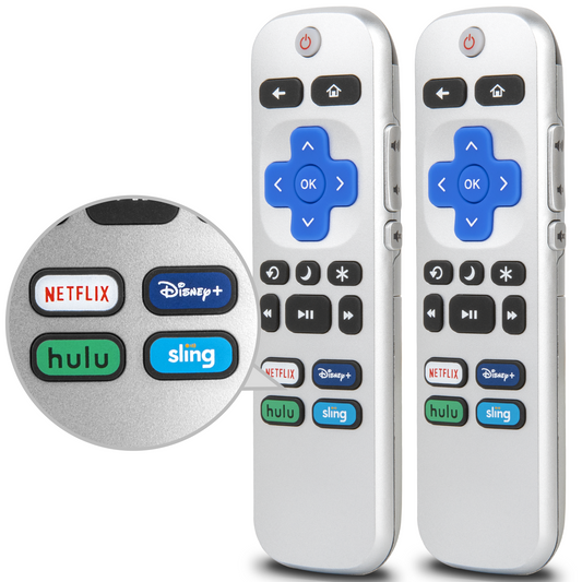 Replacement Remote 2-Pack for All Roku TV Models - Compatible with TCL, ONN, Hisense - Silver